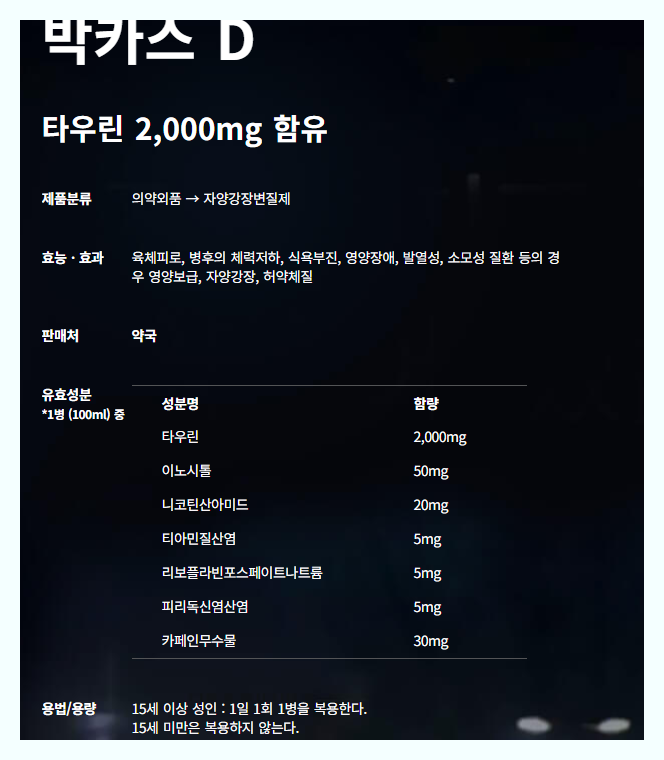 박카스 D도 똑같은 효능효과가 보이는데