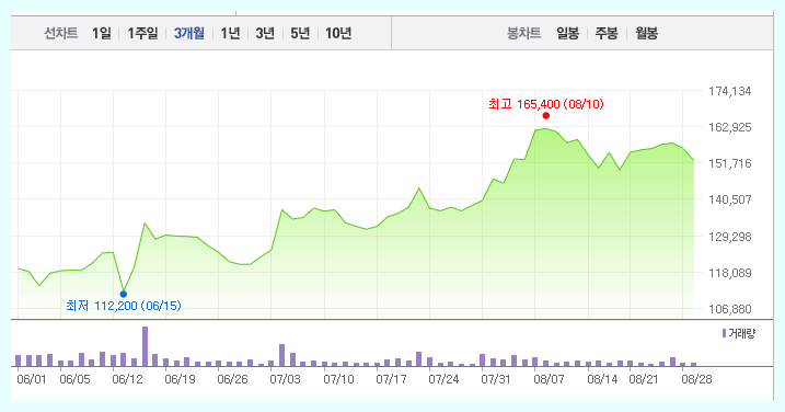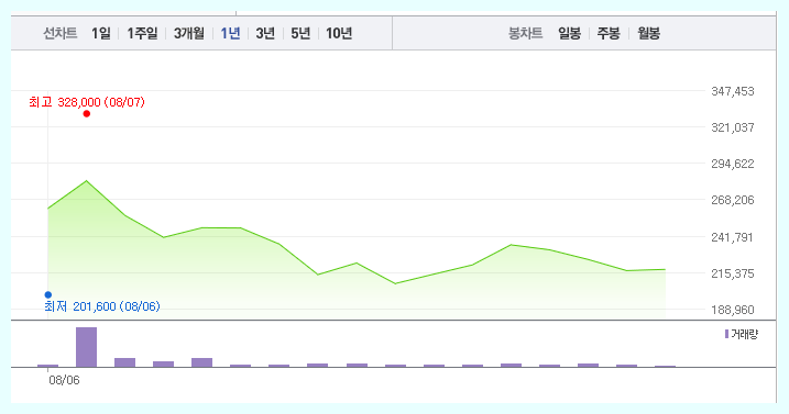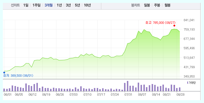 관련주들은 1일 3개월 1년 시세를 포함했습니다