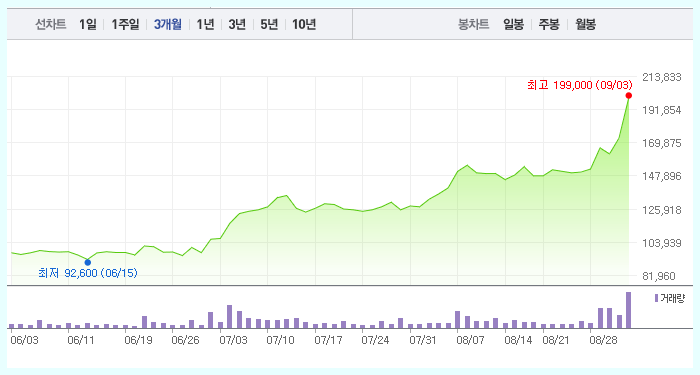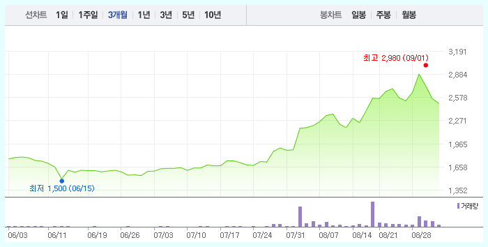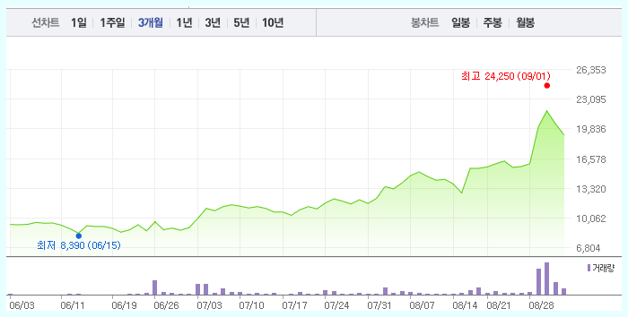 공모가 2만4천원에서 160% 상승이