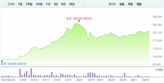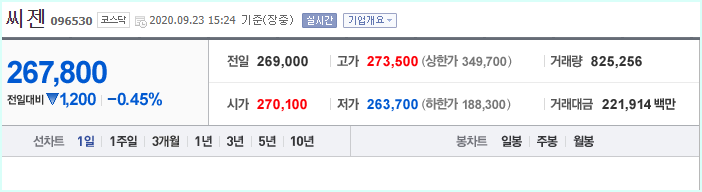 씨젠의 주가를 먼저 한번 보도록 하겠습니다