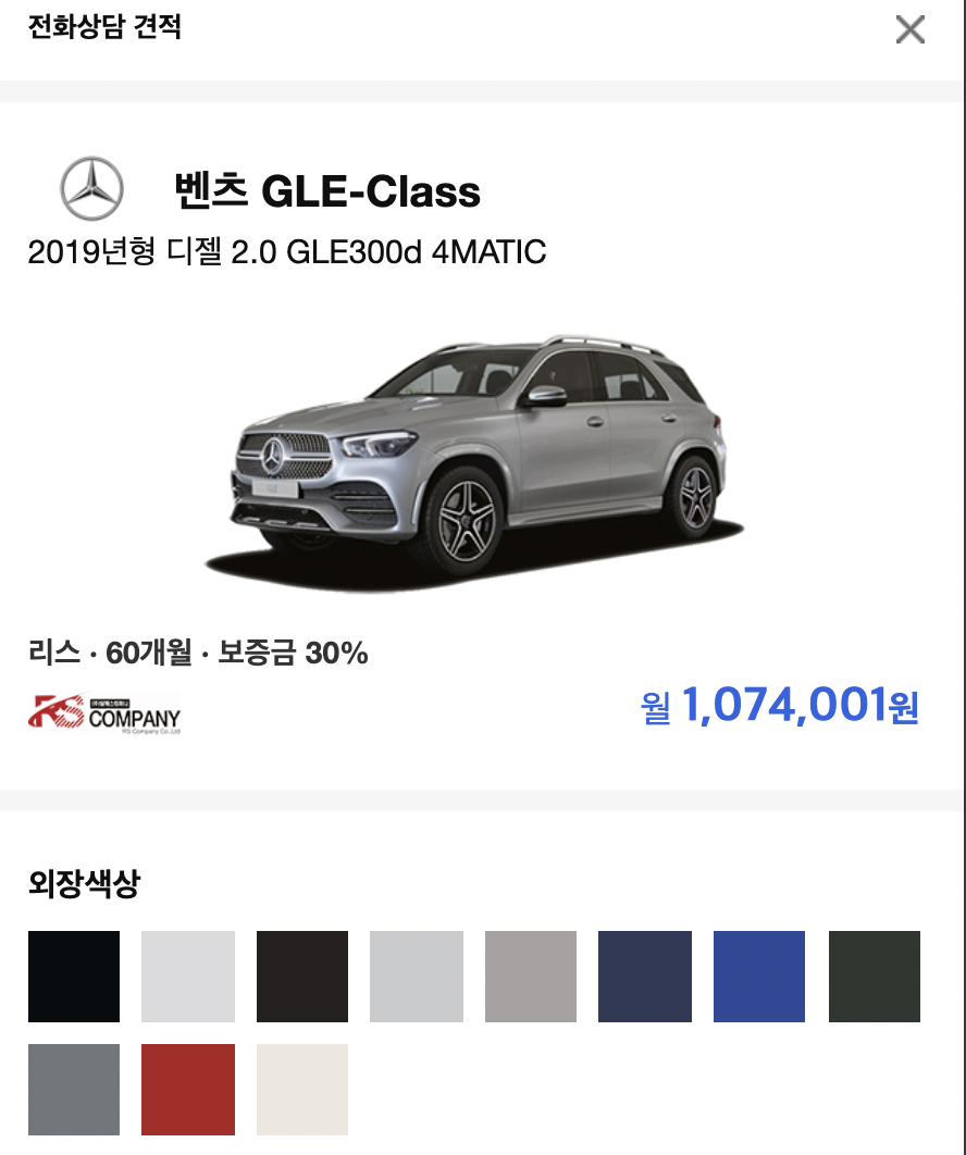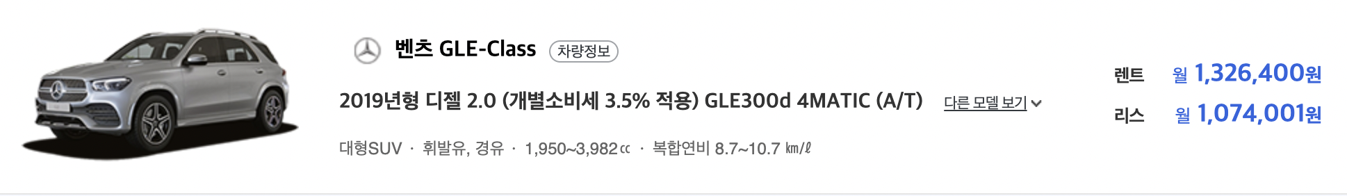 수입차도 국내차 가격보는법은 국내차와도 비슷한 과정입니다 우선 벤츠를 살펴볼까요 벤츠 GLE-Clas를 보도록 하겠습니다 조건은 똑같이 60개월에 보증금 30%로 보도록 하겠습니다