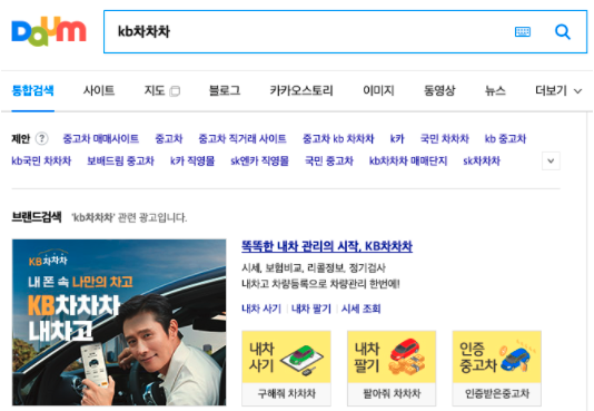 KB차차차를 검색창에서 검색후 KB차차차 홈페이지로 들어갑니다