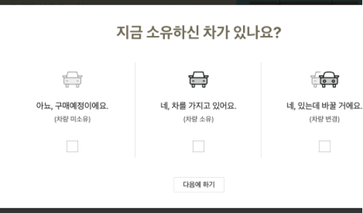 접속시 차량에 대한 구매나 판매 정보들과 차량의 정보를 물어봅니다 성실하게 기입하시면 됩니다