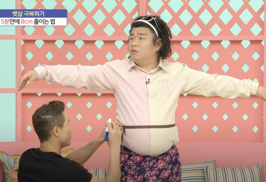 운동을 끝낸후 허리둘레가 얼마나 줄었는지 보겠습니다