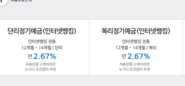 금리2.67% (12개월), 최고 2.67%(12개월)