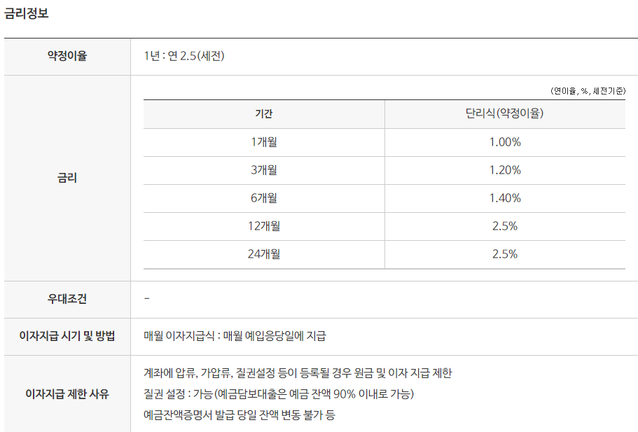 금리2.5% (12개월), 최고 2.5%(12개월)