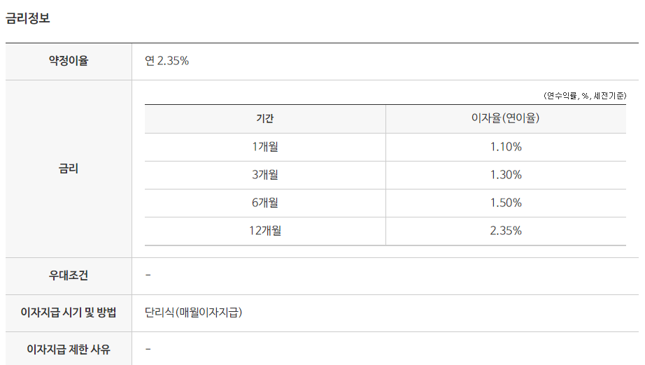 금리2.35% (12개월), 최고 2.35%(12개월)