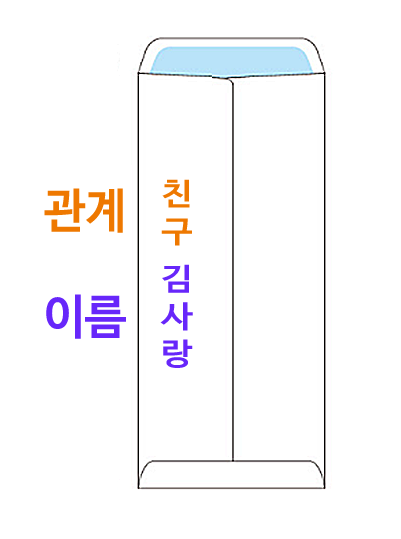 이렇게 봉투 뒤쪽에는 고인과의 관계와 부조하는 본인 이름을 넣으면 됩니다 이름만 적어도 상관은 없지만 고인의 마지막 가는 길 의미를 두는 뜻에서 고인과의 관계를 적기도 합니다 제가 앞서 설명드린 봉투의 앞면과 봉투의 뒷면에 적어야 하는 내용을 설명드렸습니다 절대적인 법은 없지만 일반적으로 많이 사용하는 기본적인 예 입니다