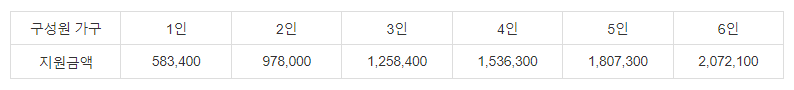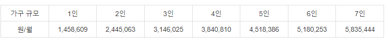 가구 구성원 인원이 7인 이상인 경우 1인 증가시마다 262,000원 추가 지급합니다.