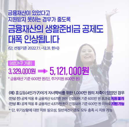 금융재산 시준 / 600만원이하 주거지원경우 800만원
