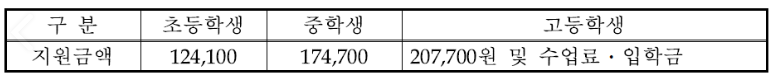 교육지원 금액은 초등/중/고등학교에 따라 지원이 상이합니다 연료비 해산비 장제비 전기요금 지원도 확인하세요