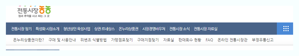 우선 소상공인시장진흥공단에서 운영하는 "전통시장 통통"을 검색하세요 그러면 사이트하 하나나오게 됩니다 많은 목록중 온누리상품권을 클릭하시면 이러한 메뉴들이 나옵니다 여기서 가맹점포 찾기를 하시면 어디서 사용할수 있는지 볼수 있습니다